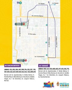 As linhas que atendem a avenida Tarumã (002, 447, 535, 600, 602, 611, 612, 616 e 713) seguem normal até avenida Epaminondas e depois pelas ruas Simão Bolivar, Ferreira Pena, Silva Ramos, avenidas Tarumã, Getúlio Vargas, 7 de Setembro, Joaquim Nabuco e novamente avenida Tarumã, para depois seguir itinerário normal.