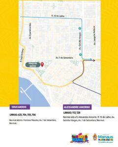 Manaus – Os usuários do transporte público que se deslocam ao centro de Manaus, a partir das 19h desta terça-feira, 5/9, devem ficar atentos a mudanças no itinerário das linhas de ônibus que atendem a região.
