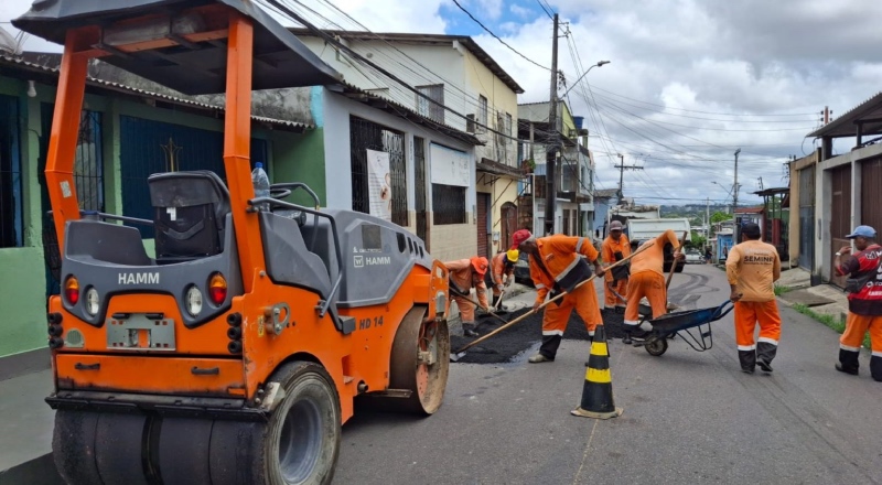 Manaus – Com ações impulsionadas de recuperação asfáltica, a Prefeitura de Manaus, por meio da Secretaria Municipal de Infraestrutura (Seminf), realizou, nesta quinta-feira, 22/1, de forma simultânea, serviços de manutenção asfáltica nas ruas Nossa Senhora do Perpétuo Socorro e Rita Barbosa, localizadas no bairro Coroado, zona Leste da capital.