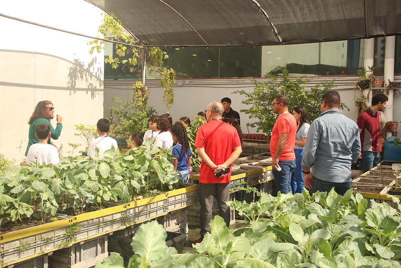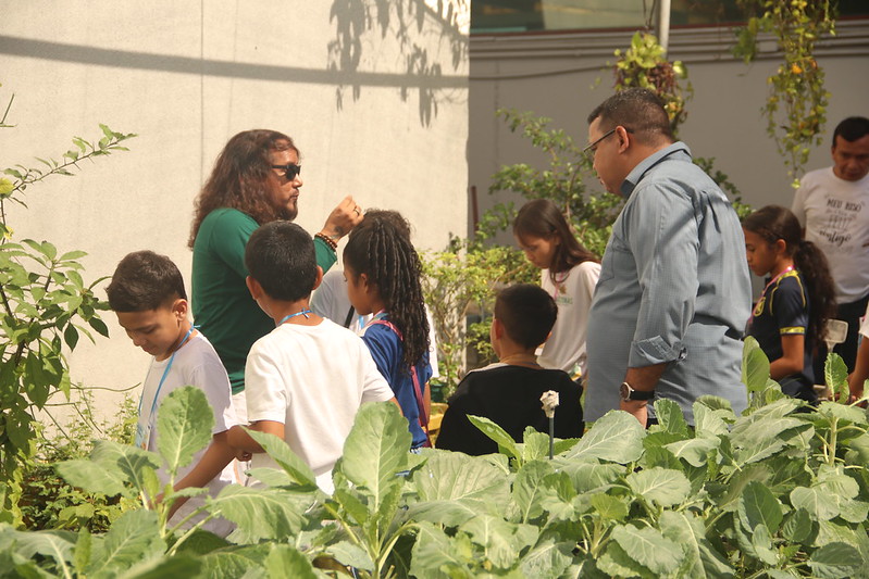 Manaus – Alunos da Escola Municipal Professor Sebastião Augusto Loureiro Filho, da Prefeitura de Manaus, participaram, na tarde desta terça-feira, 18/3, do “Circuito Ambiental”, que aconteceu no Espaço da Cidadania Ambiental (Ecam), no Manauara Shopping, bairro Adrianópolis, zona Centro-Sul. O circuito conta com a exposição “Transformando Resíduos em Arte Sustentável”, visita à horta do espaço, que fica na cobertura do centro comercial e ainda no Buritizal. A programação está à disposição até o dia 28/3, das 14h às 22h, todos os dias.