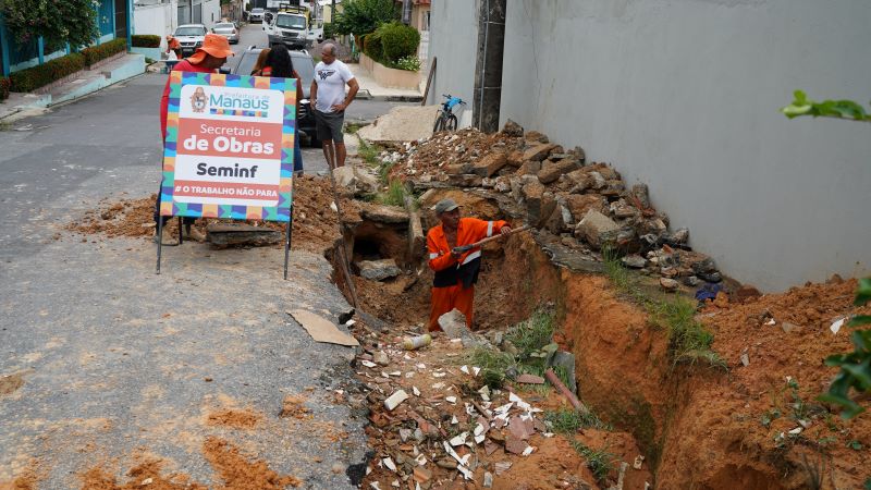 Manaus – A Prefeitura de Manaus, por meio da Secretaria Municipal de Infraestrutura (Seminf), trabalha com duas frentes de obras no bairro Parque 10, nas ruas Alexandre Magno e Rosalind Franklin, situadas na zona Centro-Sul, recuperando a rede de drenagem profunda.