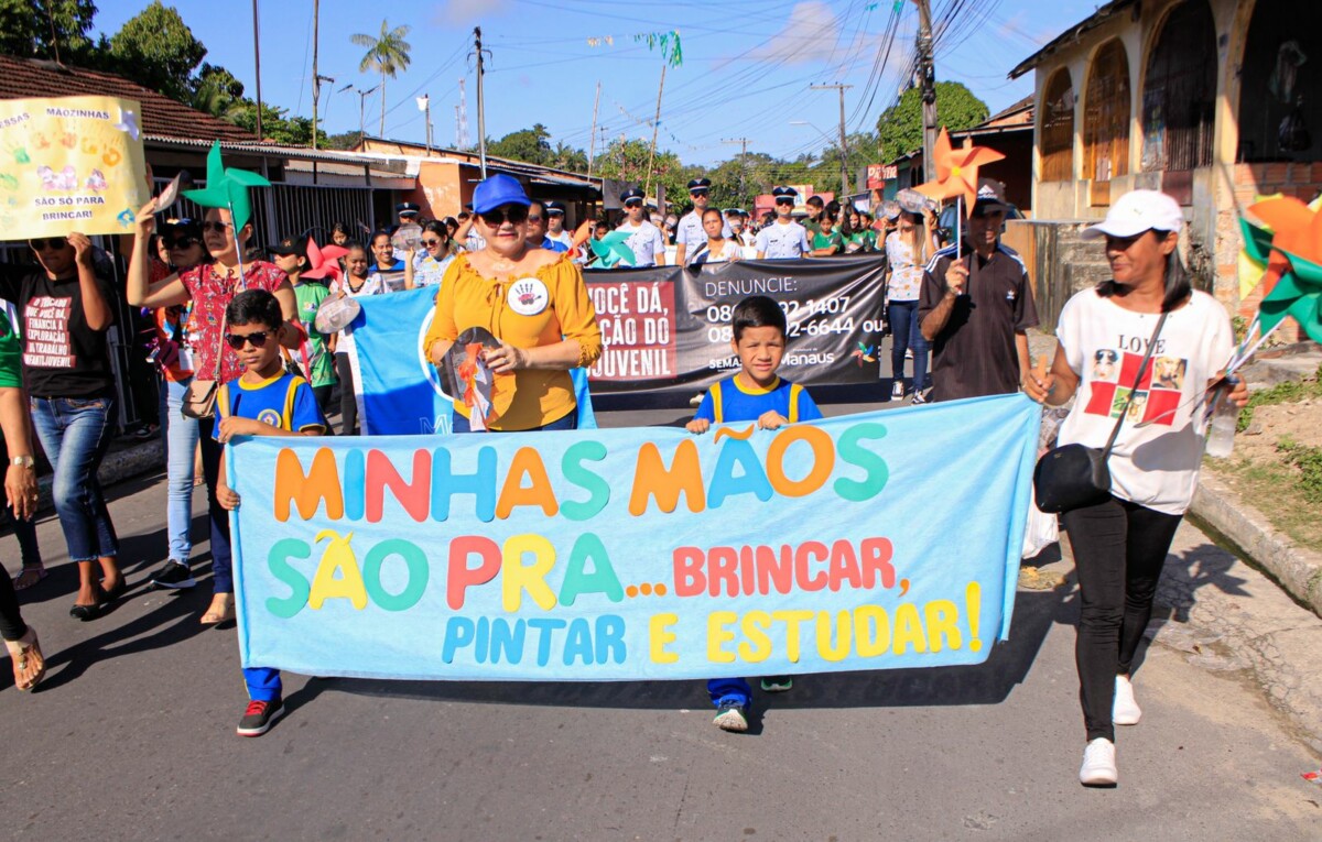 Manaus – Em celebração ao Dia Internacional de Combate ao Trabalho Infantil, a Prefeitura de Manaus, por meio da Secretaria Municipal da Mulher, Assistência Social e Cidadania (Semasc), com apoio logístico do Instituto Municipal de Mobilidade Urbana (IMMU), realizou, nesta segunda-feira, 12/6, uma caminhada alusiva à data, reunindo mais de 700 pessoas, entre servidores e alunos de instituições e escolas parceiras, para sensibilizar a população manauara quanto ao tema.