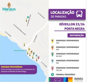 Manaus – As operações de trânsito da Prefeitura de Manaus durante o Réveillon 2024 envolve um efetivo de 350 servidores, entre agentes de trânsito do Instituto Municipal de Mobilidade Urbana (IMMU), fiscais e funcionários do sistema de transporte público, posicionados em postos fixos, viaturas e motocicletas, espalhados no complexo turístico Ponta Negra, zona Oeste, na Orla do Amarelinho, no Educandos, zona Sul, e no parque Amazonino Mendes, nas zonas Norte e Leste da capital.