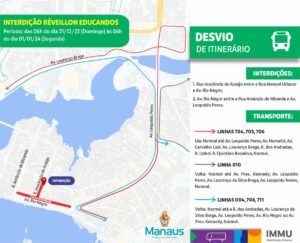 No Réveillon do Educandos, um efetivo de 60 agentes atuará na operação de trânsito. As interdições serão implantadas a partir das 6h do dia 31/12, nos seguintes trechos: