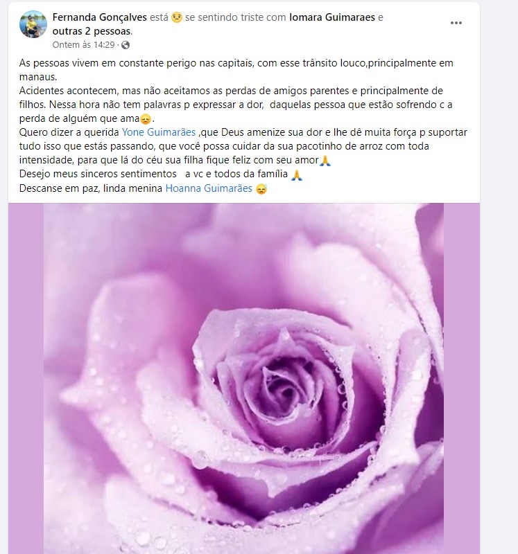 Manaus – A morte da jovem Midiã Hoanna Guiamarães, de 24 anos, que foi atingida por um caminhão enquanto estava na garupa de uma motocicleta de aplicativo em Manaus, deixou os familiares e amigos desolados. O trágico acidente aconteceu na última quinta-feira (28), na avenida Rodrigo Otávio, bairro Japiim, zona Sul de Manaus.