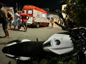 Manaus – Na noite deste domingo (16), ocorreu uma colisão entre motos e deixou quatro pessoas gravemente feridas. O caso ocorreu na rua Ayres Gomes, no conjunto Boas Novas, bairro Cidade Nova, Zona Norte da capital.