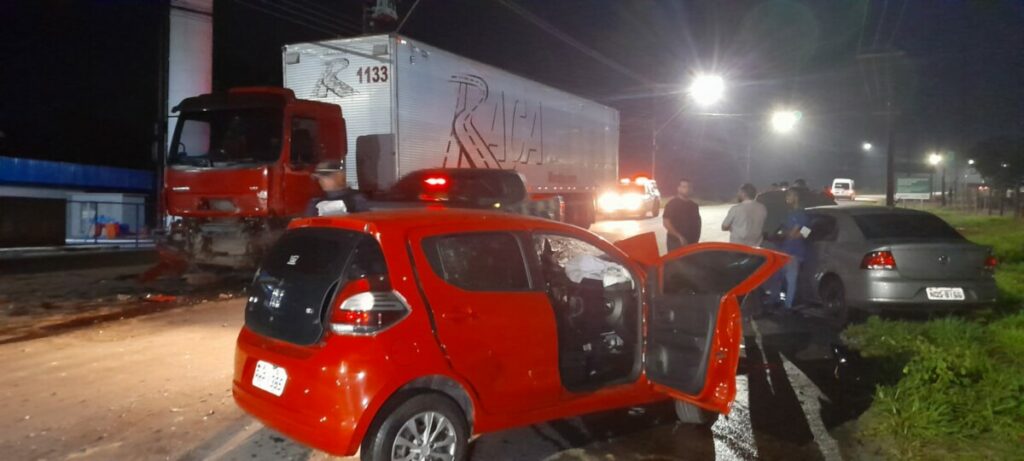 Segundo informações preliminares, o veículo modelo Mobi, de cor vermelha, teria tentado ultrapassar o Voyage, de cor prata, quando acabou colidindo de frente com o caminhão. Os dois carros pertencem a empresa Green.