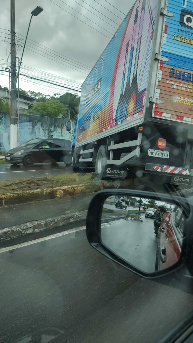 Urgente: acidente entre caminhão e carro de passeio na Av. Efigênio Salles; veja vídeo