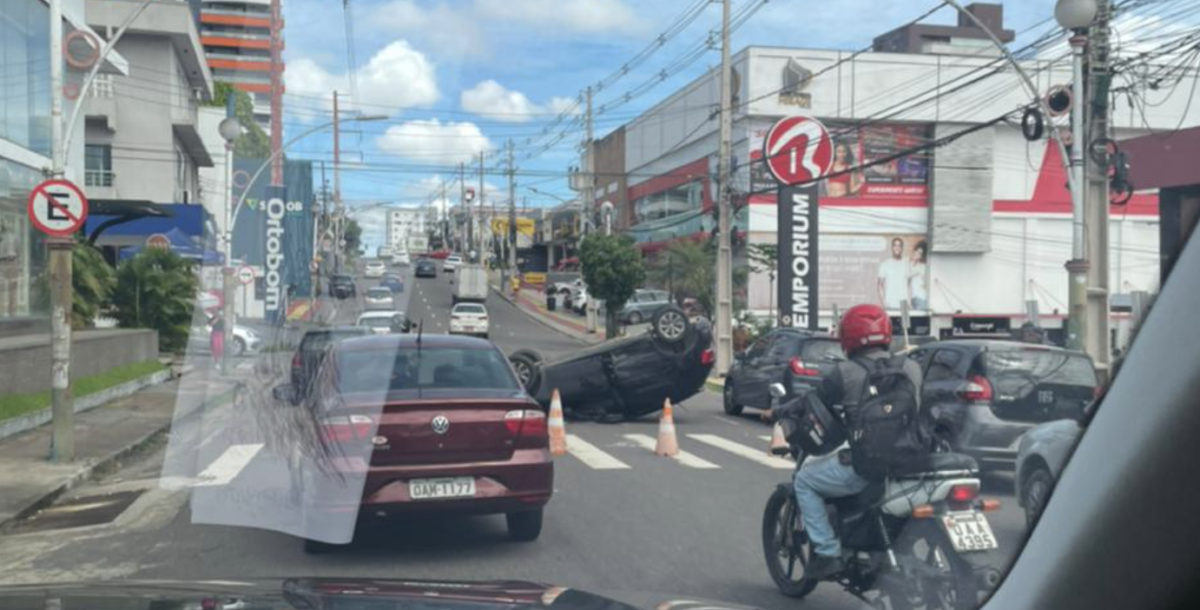 Urgente: carro capota no Vieiralves e deixa o trânsito infernal; veja