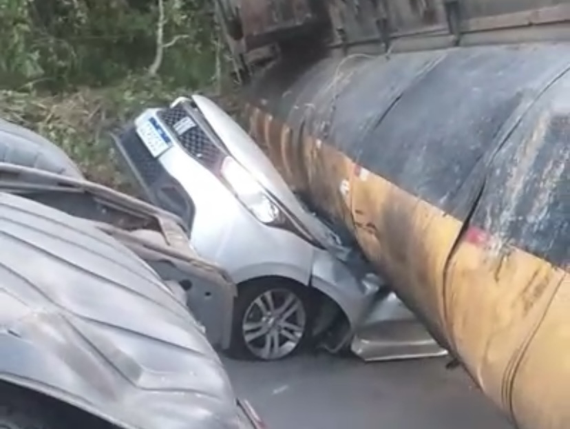 Urgente: carro é esmagado por carreta em grave acidente no Puraquequara; veja vídeos