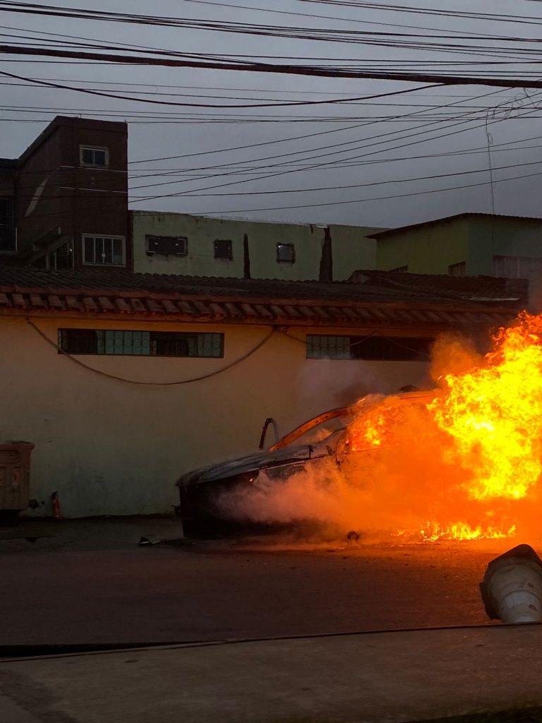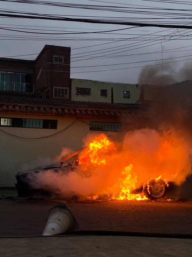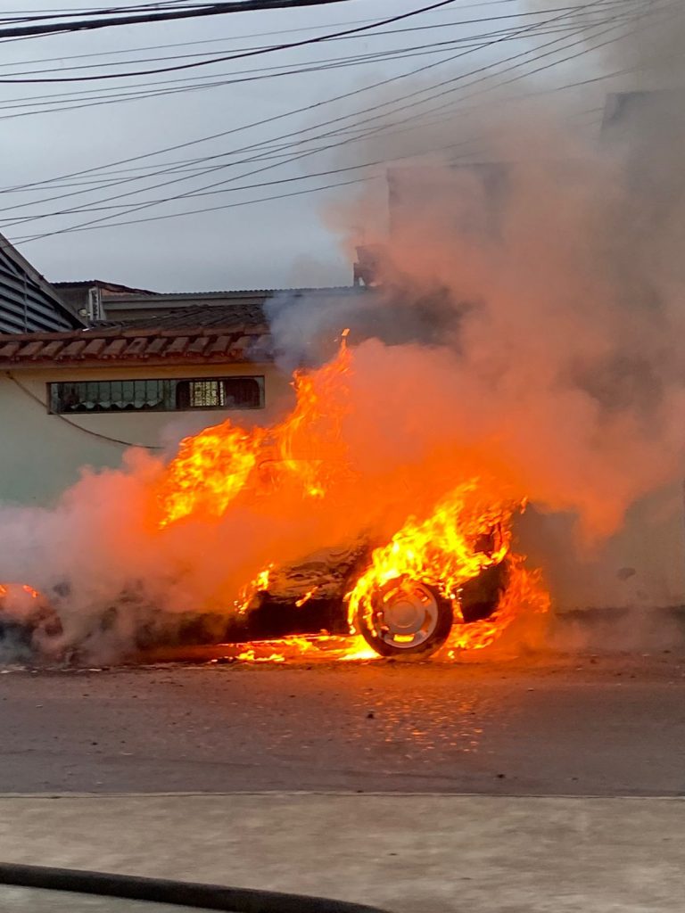 De acordo com informações preliminares, o carro estava estacionado quando começou a fumaçar e em menos de minutos foi totalmente tomado por fogo.