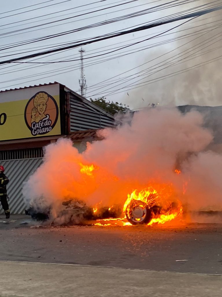 Urgente: carro pega fogo e quase explode na avenida Torquato Tapajós; veja