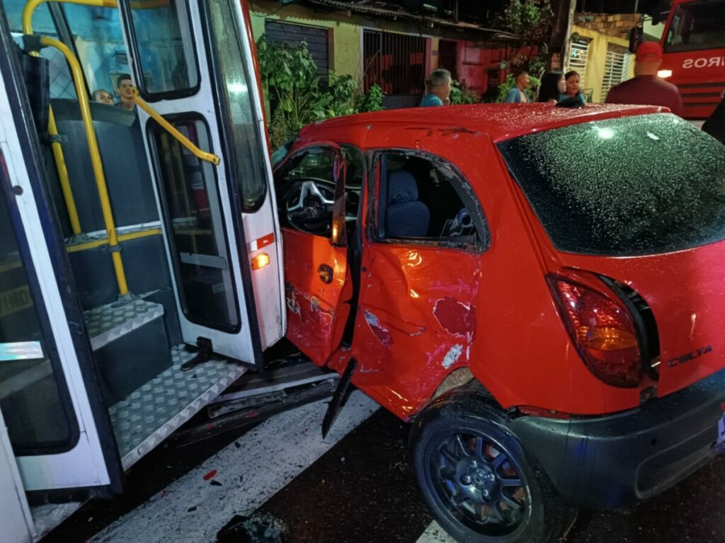 Urgente: grave acidente entre carro e ônibus deixa vítimas presas às ferragens no Mutirão