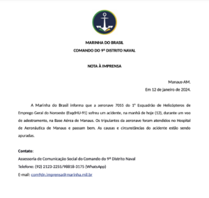 O Comando do 9º Distrito Naval emitiu uma nota informando que as causas e circunstâncias do acidente serão investigadas pelas autoridades competentes, com o objetivo de determinar os fatores que contribuíram para o incidente.