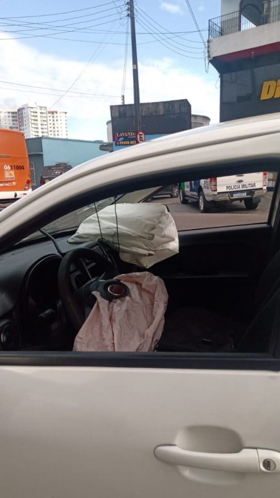 De acordo com informações preliminares, um carro de aplicativo modelo Mobi, estava passando na avenida quando perdeu o controle e acabou atingindo outro carro de passeio. Com o impacto da colisão, acabou também colidindo contra uma S10 de cor branca.