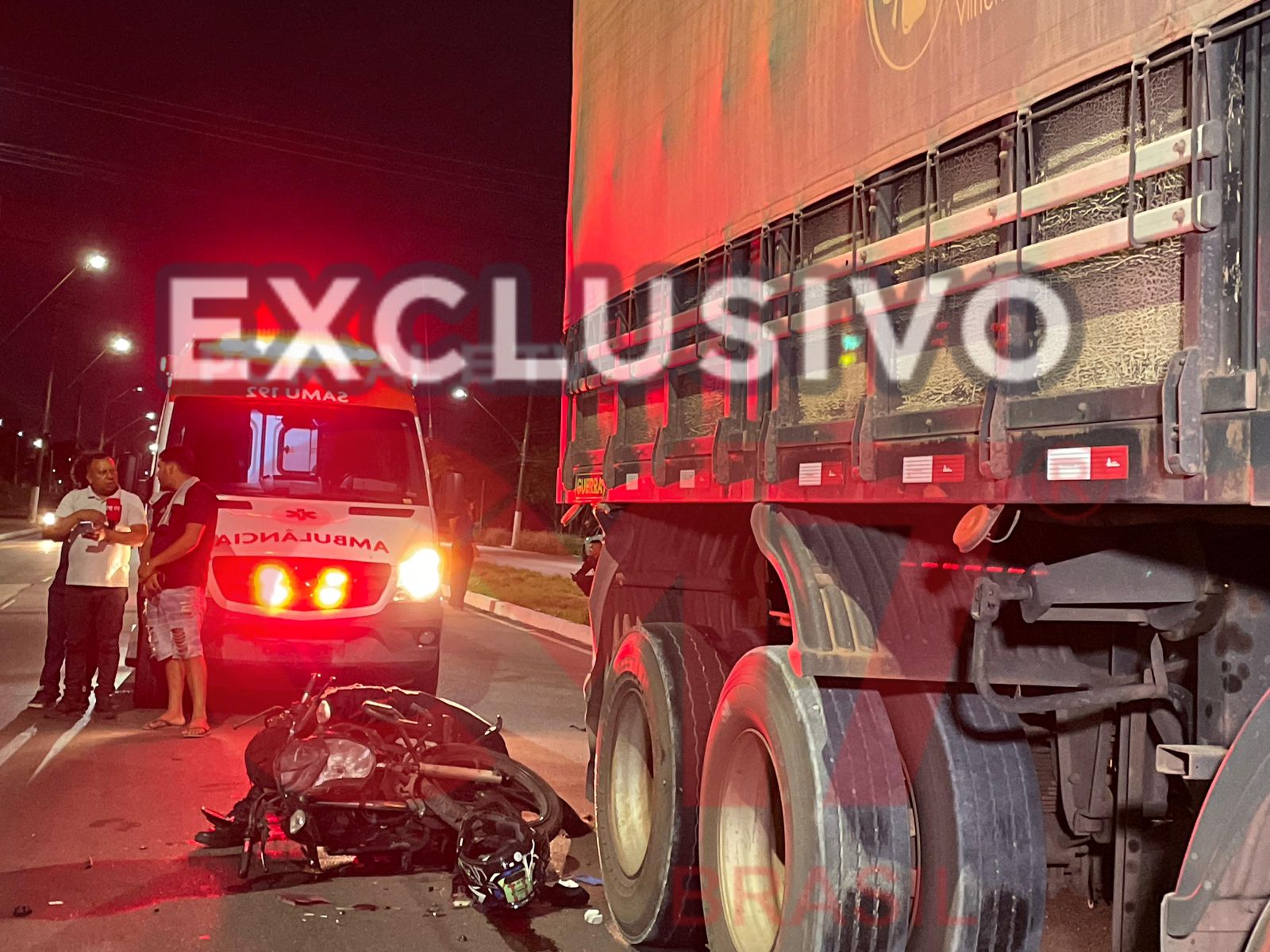 Urgente: motoqueiro m0rre ao colidir com caminhão no Distrito Industrial; veja vídeo