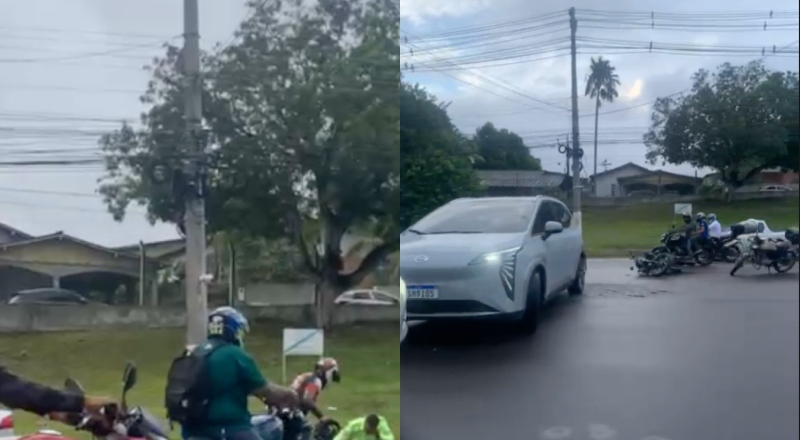 O acidente envolveu um motociclista de aplicativo e um carro da marca BYD. Testemunhas afirmam que o motorista do automóvel tentou fazer um retorno irregular e entrou na frente da moto em movimento.