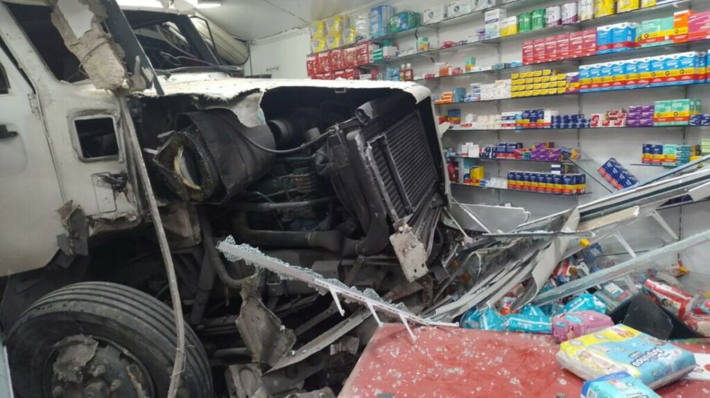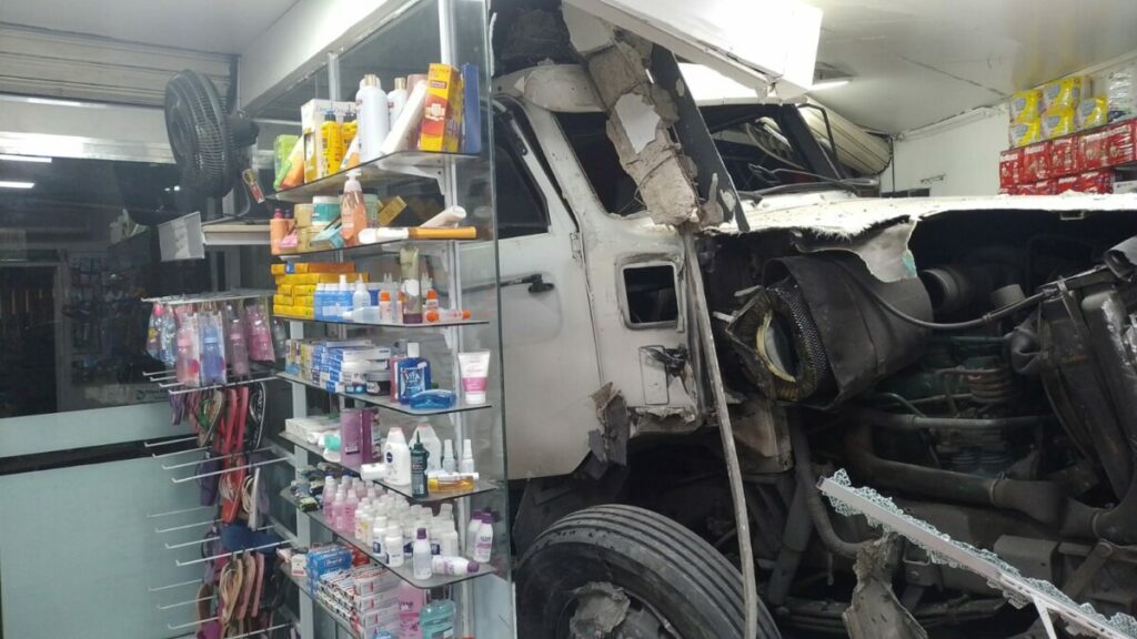 Segundo informações preliminares, o motorista da carreta teria perdido o controle da direção ao perceber que o veículo não estava freando quando acabou arrastando vários carros e invadindo uma drogaria.