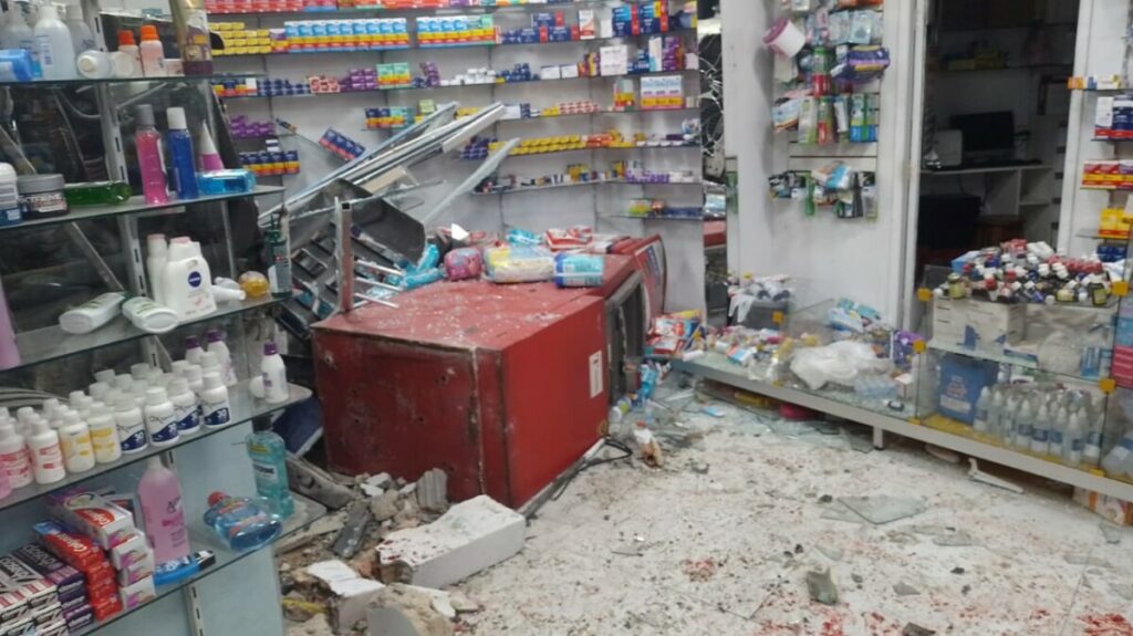 O impacto da colisão foi tão forte que além de deixar vários carros totalmente danificados, destruiu por inteiro a drogaria.