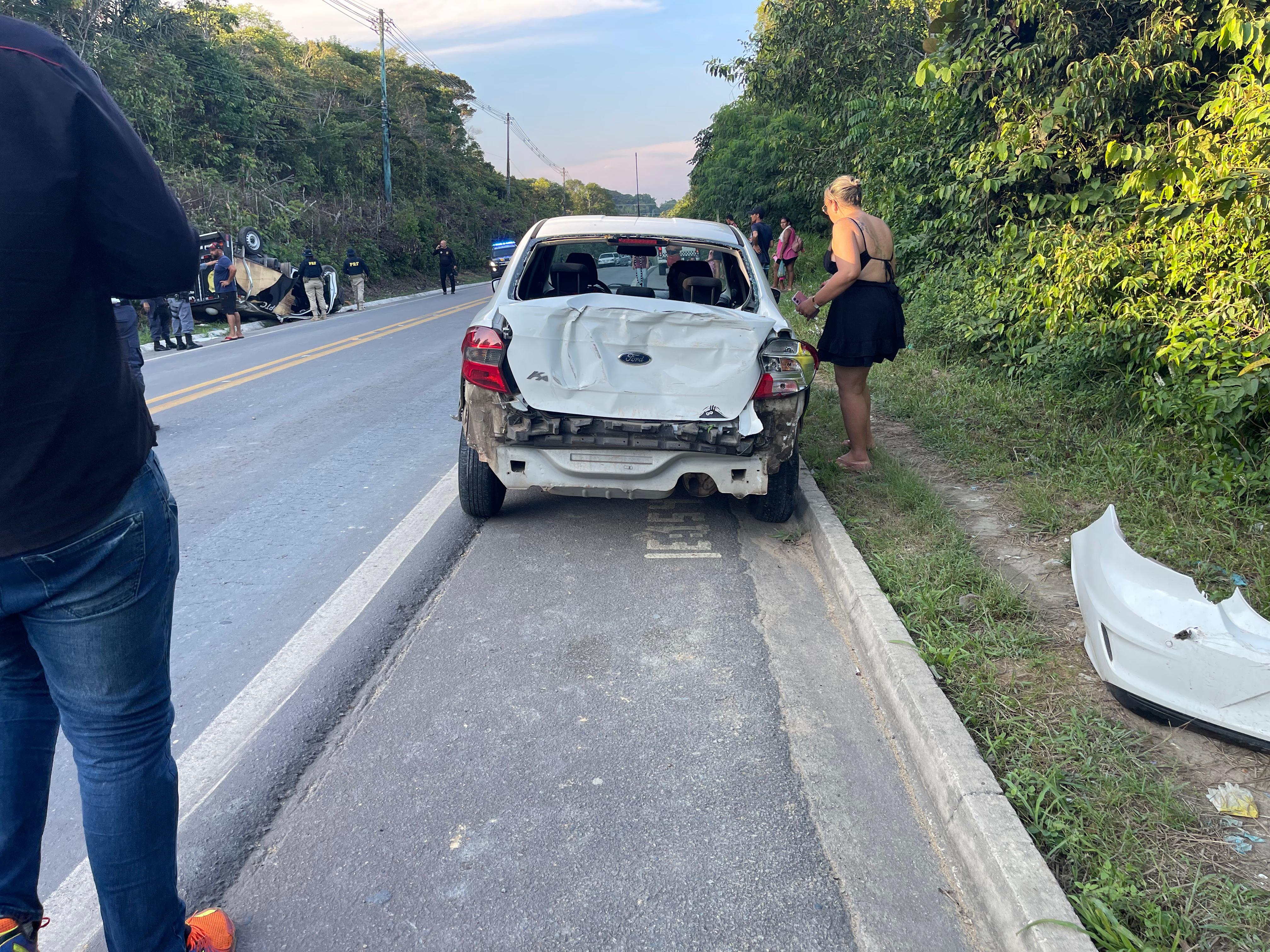Viatura do IML, que estava transportando um corpo, capota após colisão na BR-174; veja vídeos