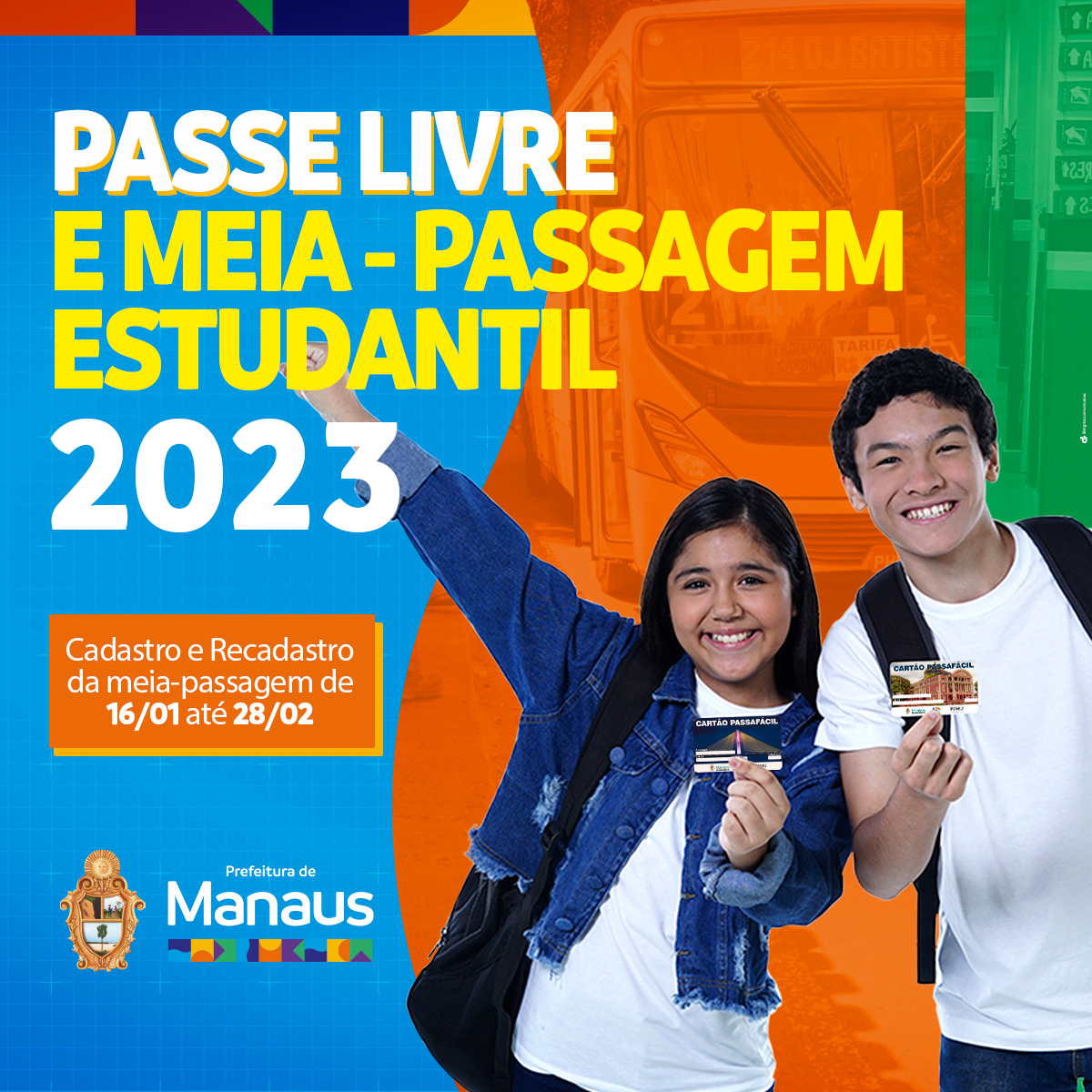 O estudante que nunca utilizou o benefício da meia passagem, não importa a idade, poderá se cadastrar pela primeira vez no site: estudantes.manaus.am.gov.br.