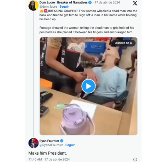 “Make him President [Façam dele presidente]”, escreveu o homem nas redes sociais, conforme relatado pelo Metrópoles, sugerindo que o cadáver, mesmo sem vida, “parece mais vivo do que Joe Biden”.