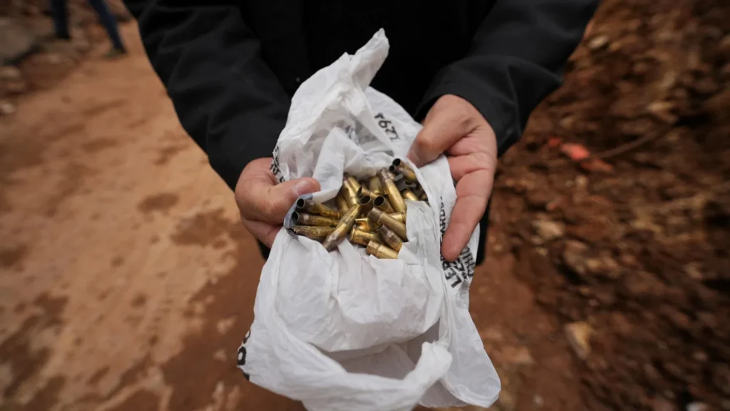 Entre os destroços, objetos do cotidiano civil revelavam a vida interrompida pela guerra, utensílios de cozinha, pinturas nas paredes e até um livro de colorir infantil. Pelas ruas da vila, cápsulas de balas espalhadas na manhã de sábado completavam o cenário de destruição deixado pelos confrontos.