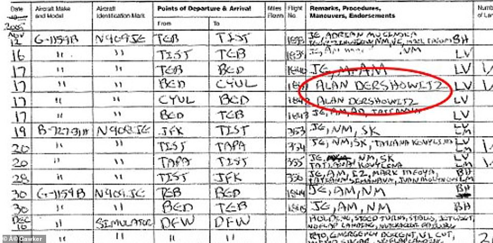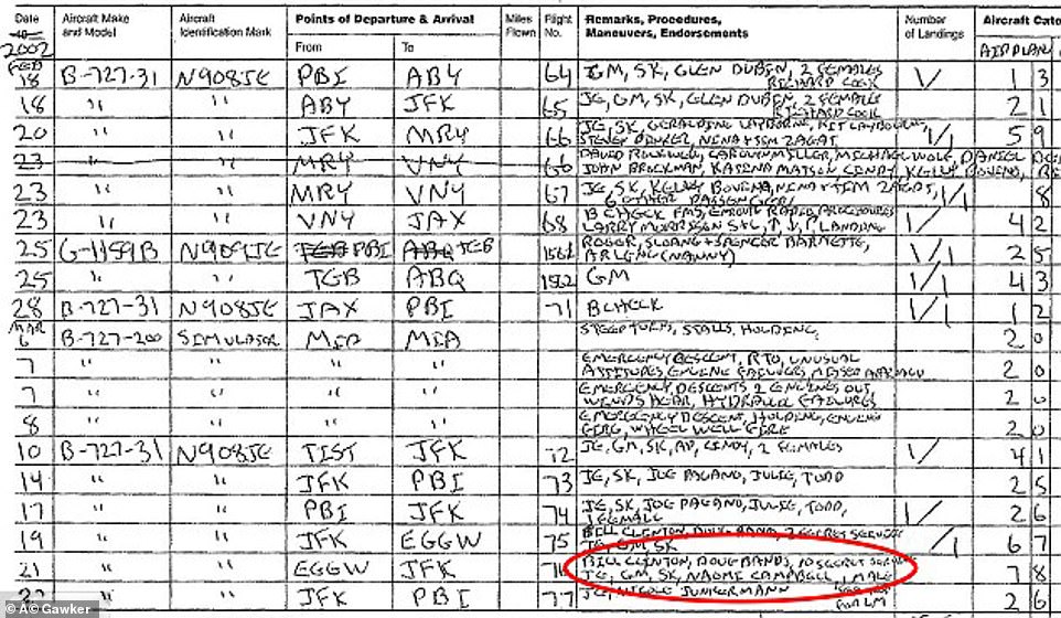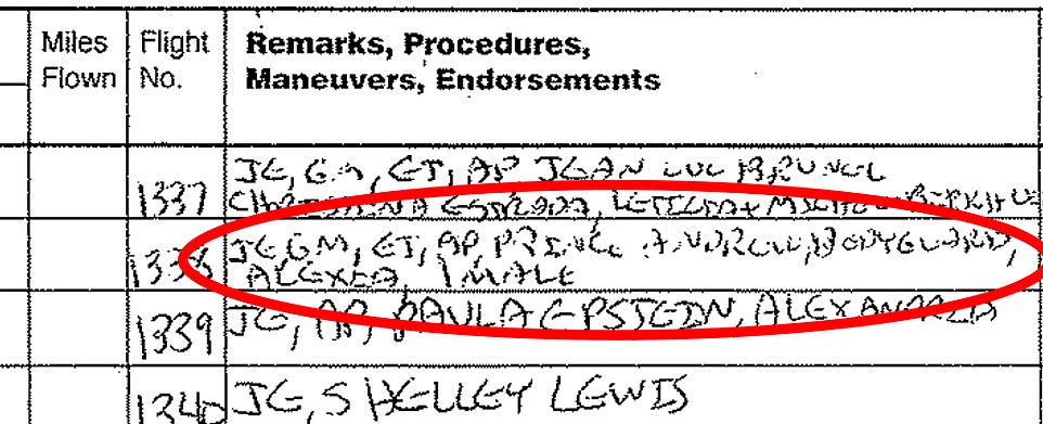 Os registros de voo mostram que o presidente Bill Clinton, Kevin Spacey e Chris Tucker aparentemente fizeram uma viagem juntos do aeroporto JFK com Jeffrey Epstein (‘JE’) e Ghislaine Maxwell (‘GM’). Em 2000, o príncipe Andrew estava a bordo do avião de Epstein junto com Epstein, Ghislaine Maxwell e outros em um voo de Nova Jersey para a Flórida, de acordo com registros de voo. Em 2000, o príncipe Andrew estava a bordo do avião de Epstein junto com Epstein, Ghislaine Maxwell e outros em um voo de Nova Jersey para a Flórida, de acordo com registros de voo. Os Registros de voo também mostram o nome de outras personalidades que teriam embarcado no ‘Lolita Express’, como o advogado americano Alan Dershowitz e a modelo Naomi Campbell, que esteve à bordo da aeronave com Bill Clinton.