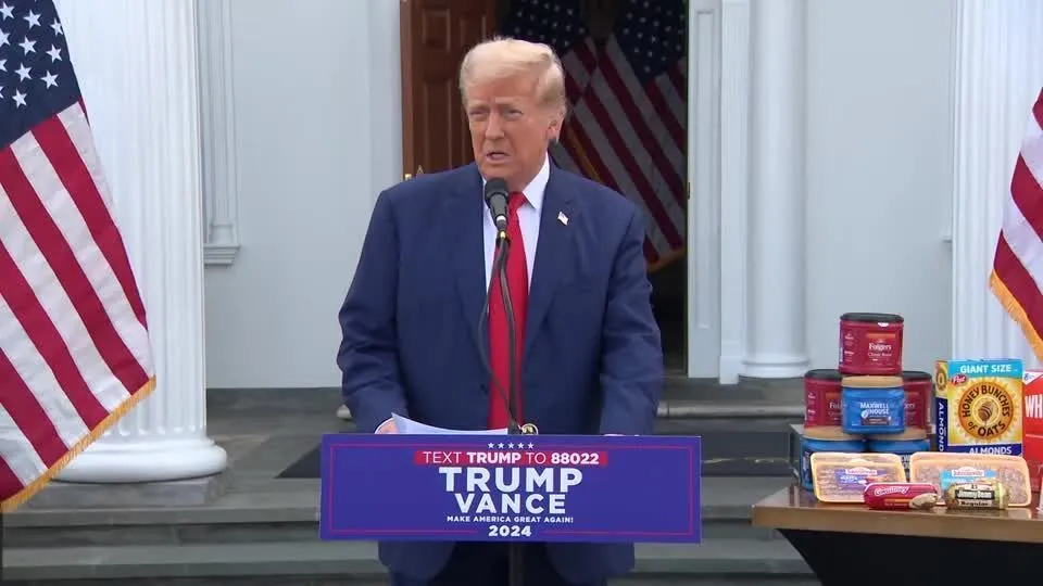 Ao lado do púlpito do qual ele falava, em sua residência em Nova Jersey, foi montada uma mesa com diversos produtos alimentícios, como bacon e cereais. Na ocasião, Trump leu uma longa lista de aumentos de preços durante o governo Biden.