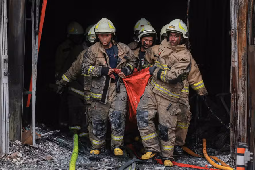 Imagens transmitidas pela Kompas TV mostraram dezenas de bombeiros tentando retirar pessoas que estavam dentro do prédio, e alguns carregavam sacos para cadáveres. Alguns trabalhadores também foram vistos escapando dos andares superiores do prédio usando escadas portáteis.