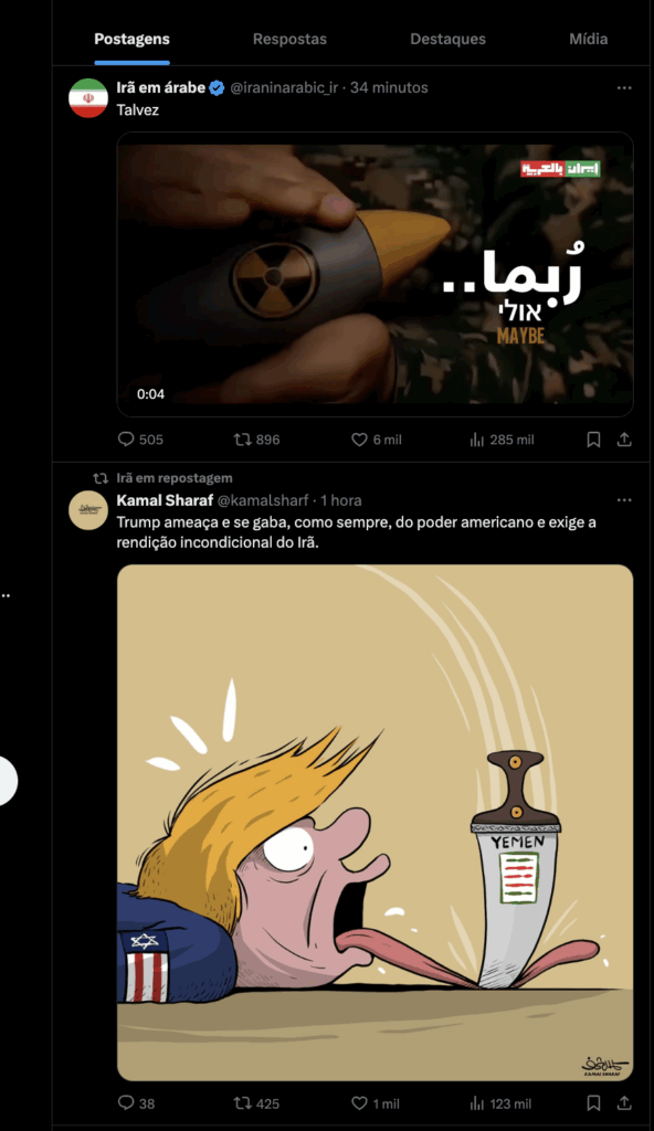 A postagem, publicada em meio ao quinto dia de confrontos entre Israel e Irã, que já deixaram dezenas de mortos em Israel e centenas no país persa, é uma clara provocação às recentes exigências do presidente dos Estados Unidos, Donald Trump, para que Teerã abandone seu programa nuclear. O gesto audacioso intensifica a tensão em um cenário global já volátil, enquanto o mundo observa os desdobramentos com apreensão.