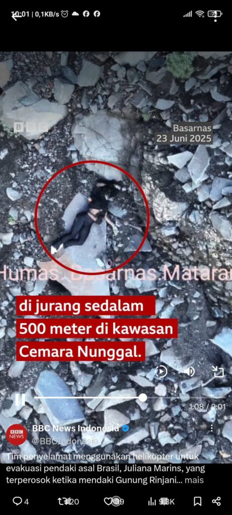 Mundo – Juliana Marins, uma jovem de 26 anos natural de Niterói (RJ), foi encontrada sem vida nesta terça-feira (24) no Monte Rinjani, um vulcão ativo localizado na ilha de Lombok, Indonésia. A brasileira, que estava em um mochilão pela Ásia desde fevereiro, desapareceu há quatro dias durante uma trilha acompanhada por um grupo de turistas e um guia local. Segundo alpinistas envolvidos nas buscas, Juliana sofreu uma segunda queda, ainda mais grave que a inicial, em uma área de difícil acesso, o que pode ter sido determinante para seu trágico desfecho.