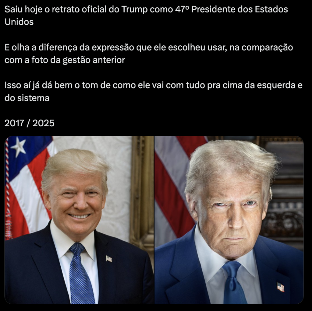 “A expressão no olhar está como a de Winston Churchill, como se Trump estivesse preparado para a guerra”, comentou um usuário no Twitter. Outros internautas destacaram o simbolismo da pose, que transmite determinação em um momento de grandes divisões políticas nos Estados Unidos.