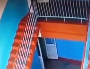 Mundo - Em uma escola na Rússia, um adolescente caiu da escada entre os andares. O ocorrido foi capturado por…
