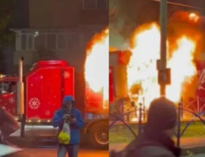 Caminhão de natal da Coca-Cola pega fogo durante carreata; veja vídeo