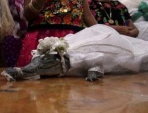 Mundo - O prefeito da aldeia San Pedro Huamelula, no sudoeste do México, se casou com um jacaré vestido de…