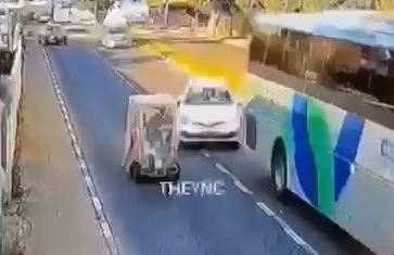 Mundo - Câmeras de segurança flagram o momento exato que um homem conduzindo um veículo pequeno, comparado a um carro…