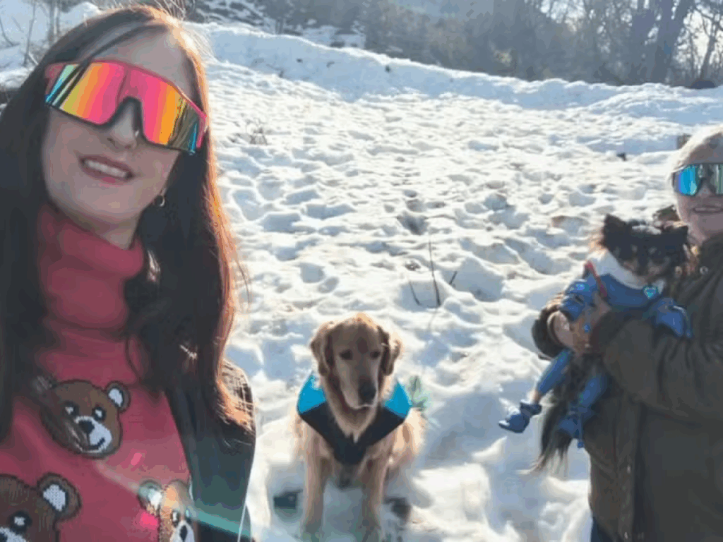 Ela postou várias fotos da viagem. No dia 19, por exemplo, os cães e as duas mulheres chegaram ao destino e viram a neve. Labibi publicou uma imagem em que escreveu: “Dirigi 5 mil km para ver isso. Para ter esse prazer de tirar exatamente essas fotos, para ver ele andando na neve, provando a sensação”.