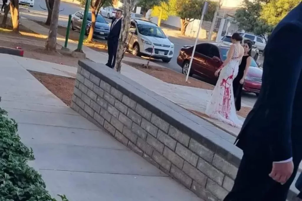 A noiva, identificada apenas pelo nome Alexandra, estava prestes a entrar na igreja de Nuestra Señora del Rosário ao lado do pai quando foi surpreendida por um líquido no corpo. Ainda sem saber do que se tratava, a mulher pensou que teria sido atingida por água e só percebeu que estava suja de tinta vermelha quando olhou para os convidados.
