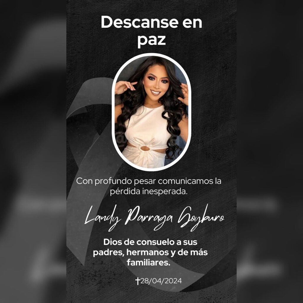 Mundo – Neste domingo (28), Landy Párraga Goyburo, uma ex-candidata a Miss Equador, foi assassinada a tiros enquanto desfrutava de um momento de lazer em um shopping na cidade de Quevedo. O crime foi gravado em vídeo e compartilhado nas redes sociais.