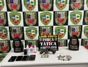Dupla é presa com arma e drogas no bairro Dom Pedro, em Manaus; veja vídeo