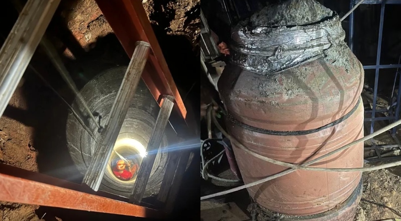 A remoção do corpo exigiu uma operação prolongada, com apoio da Coordenadoria de Recursos Especiais (CRE) e do 20º Grupamento de Bombeiros Militar (GBM). Devido à grande quantidade de material utilizada para selar o local, foram necessários equipamentos e materiais específicos para a retirada do tonel.