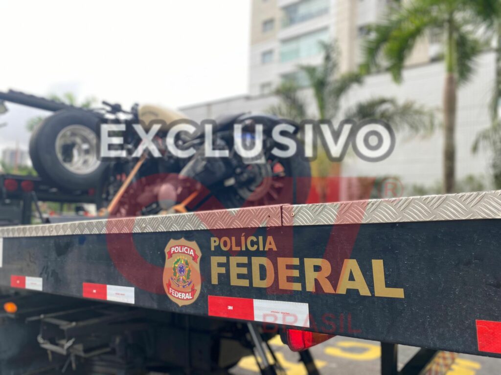 A moto de alto valor foi confiscada pela PF após informações e investigações que apontaram para sua associação a um advogado morador do condomínio, apontado como um dos membros do grupo de motoqueiros responsáveis por espancar o policial.