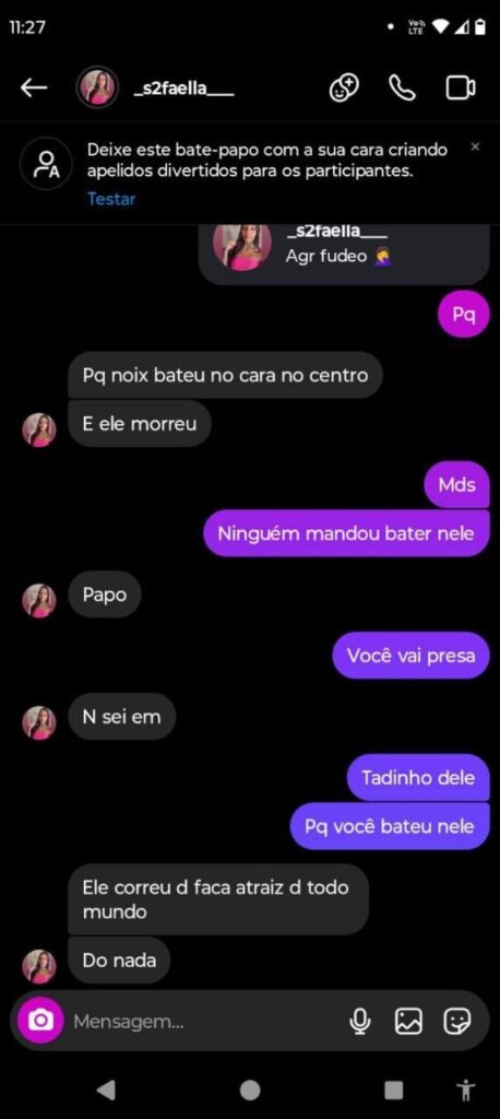Entre os agressores, uma mulher identificada apenas como Faella, que aparece nas imagens desferindo chutes contra o idoso já caído no chão, reconheceu em mensagens enviadas a uma amiga que o homem faleceu. “Agora fudeo (sic)”, escreveu, após ser informada da morte de Miguel. A troca de mensagens viralizou nas redes sociais, ampliando ainda mais a revolta popular.