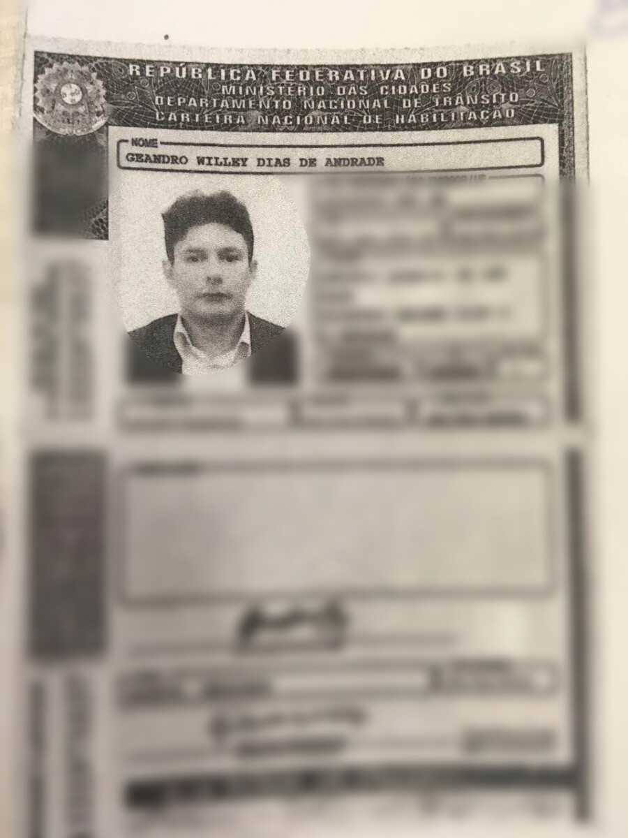 A estratégia do golpista é usar do constrangimento da situação para ganhar a confiança, uma abordagem de engenharia social baseada na dissimulação com informações e documentos falsos. Não se sabe, inclusive, se o nome do golpista é de fato Geandro. Mas foi esta cópia que ele deixou em um dos estabelecimentos em que aplicou o golpe. Veja:
