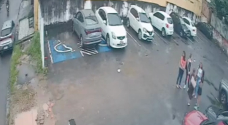 Manaus – Câmeras de segurança flagraram o momento em que cinco mulheres foram assaltadas dentro do estacionamento de uma faculdade particular no bairro Adrianópolis, zona Centro-Sul de Manaus. O crime aconteceu por volta das 17h30 de quinta-feira (26).