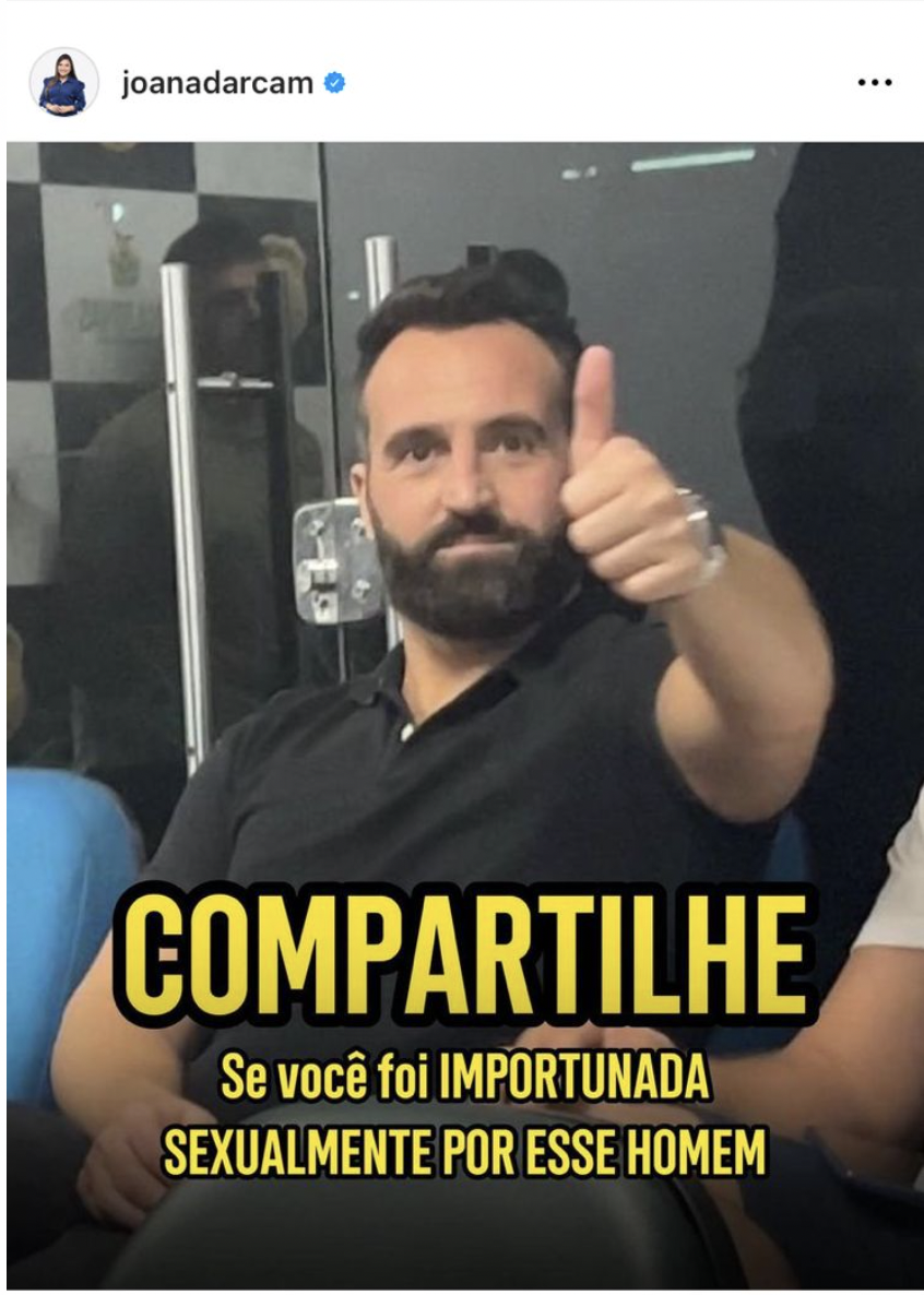 Não temendo nem mesmo os policiais, um dos homens ainda estava fazendo pose na delegacia. O momento foi registrado e divulgado no Instagram da deputada com a seguinte legenda: “Compartilhe se você foi sexualmente importunada por esse homem”.
