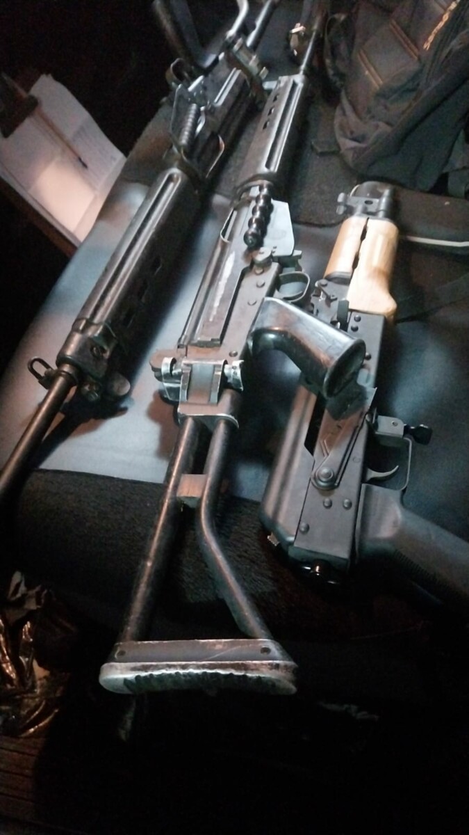 Entre as armas apreendidas estavam um fuzil 7.62, um parafal e uma AK-47.