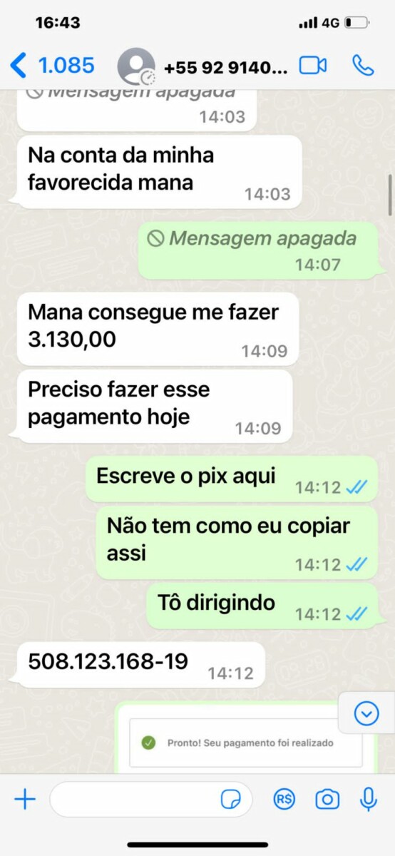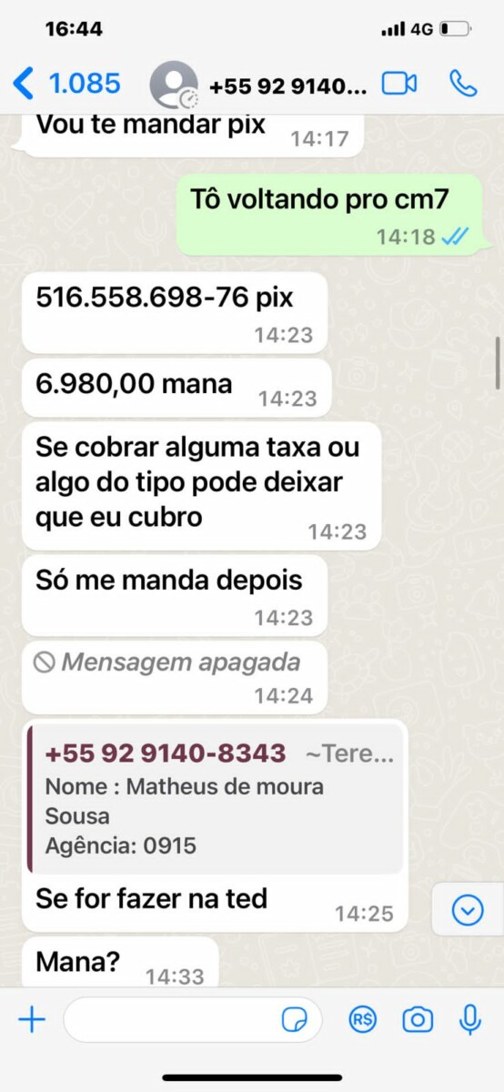 A justificativa para a cliente que teve o desprazer de sofrer o golpe no Pix, foi a de que não se pode ser ressarcido. Isso porque o valor vai direto para contas que não são rastreadas ou que não podem ter o dados divulgados, sob a ótica do sigilo contratual.