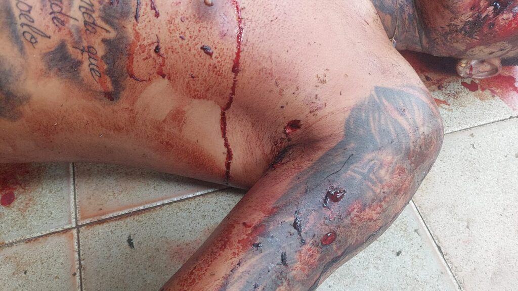 A família rapidamente entrou em contato com a polícia, informando sobre a presença de um intruso em sua casa. A equipe policial chegou ao local para prender o homem, que reagiu de maneira agressiva durante a abordagem, e agrediu um dos agentes. O homem tentou pegar a arma do policial, que se defendeu e efetuou dois disparos contra o criminoso, que foi atingido no tórax e no braço. O suspeito foi a óbito no local.